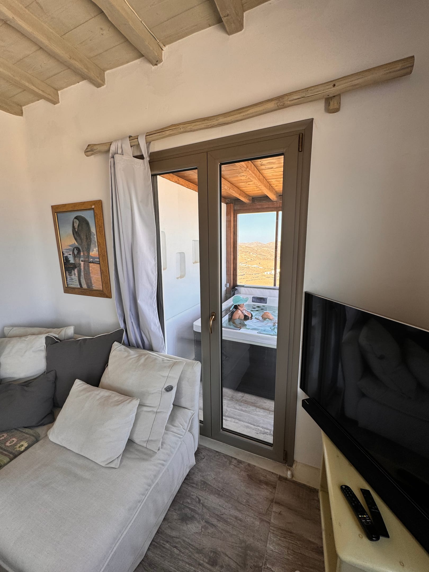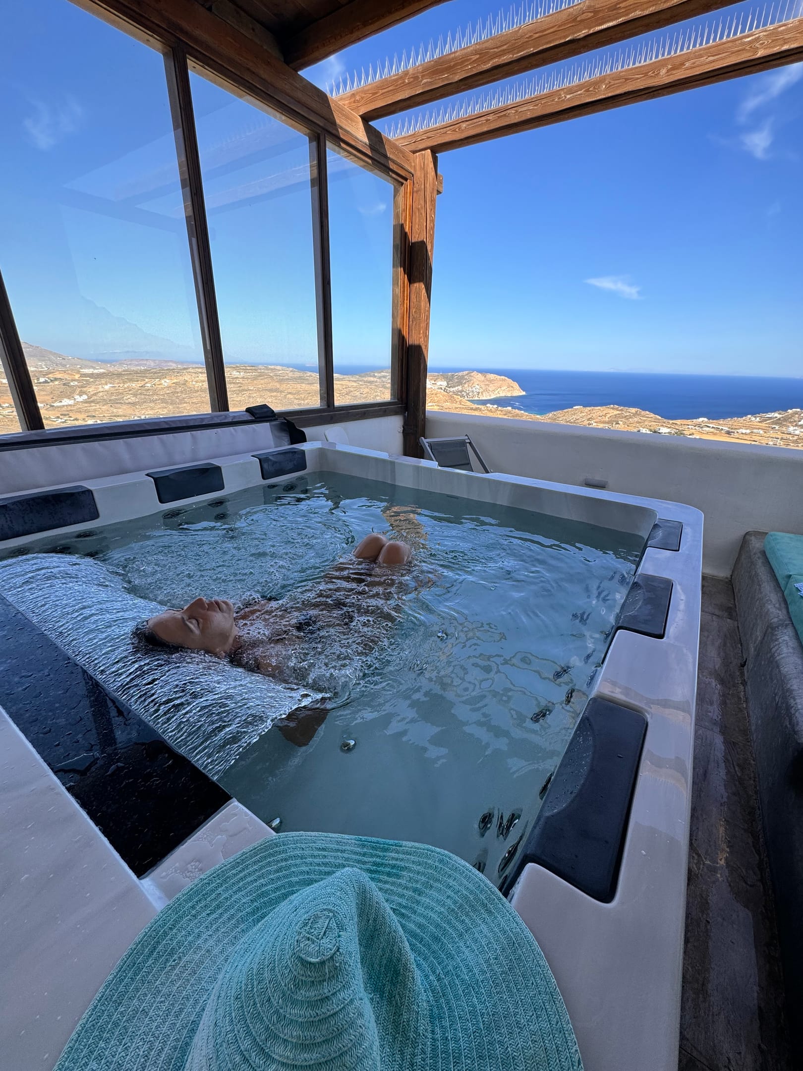 •One features a private mini pool spa (Jacuzzi) with partial shading and breathtaking views of the Aegean Sea