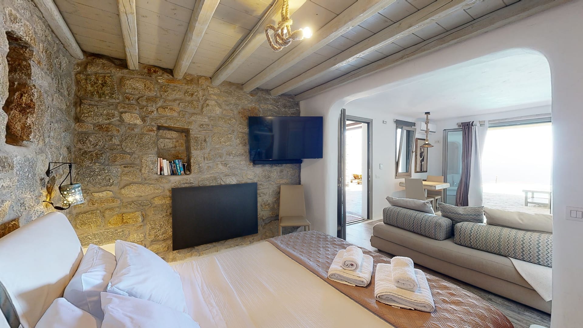 •High-quality bedding and Cycladic design elements throughout