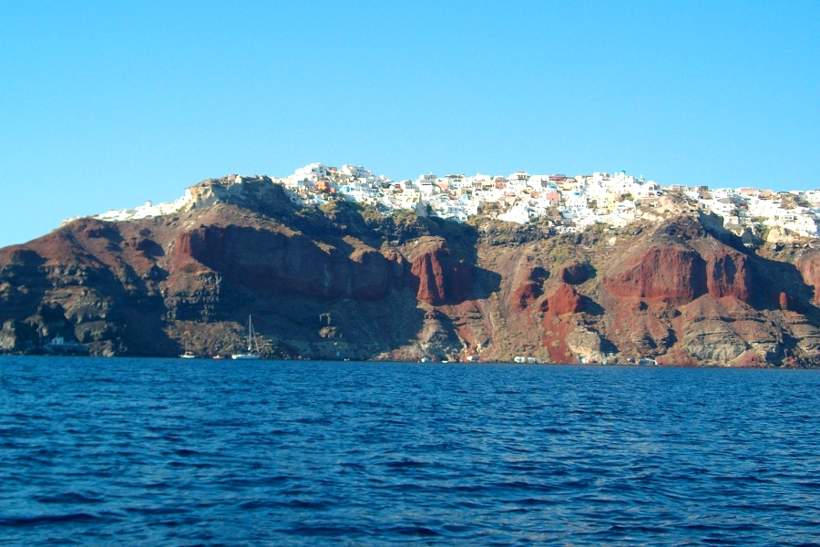 Bright white houses, swimming pools on the edge of the caldera, and sunlight lending warm tones to the walls of the picturesque houses. The sense of human dimension disappears as you immerse yourself in the volcano, Skaros, and the endless sea.