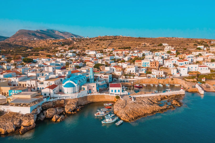 Its beauty and uniqueness justify the small odyssey that the traveler must go through to arrive on the island but then its coastline of 59 km & its five villages: Agia Marina, the Polly, Panaya, Arvanitohori, and Fry (capital ) make this a trip worth taking!